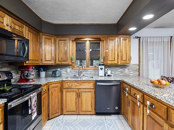 This brick front, ranch home is on an oversized lot. The home has been well maintained and updated throughout, including granite countertops in the kitchen, 5-year-old appliances, and new flooring in the bedrooms. The kitchen is spacious and includes a bar for additional seating. The dining room features a beautiful wood burning stove with brick hearth. The 4th bedroom is located on the opposite side of the home with half bath and laundry. This bedroom could be utilized as an office, den, sewing room or guest suite/mother-in-law quarters, as it features a door that exits to the back yard/patio. The enclosed patio provides additional space and could be utilized in a multitude of ways. The large, fenced backyard contains many shade trees, giving relief on those hot, sunny days. The thinned area would be an ideal space for a garden. Storage shed on concrete pad will convey. The deep, oversized 2-car garage is 632sf. Roof was replaced in 2020 with 30-year dimensional shingles! Additional Rooms: Sun Room