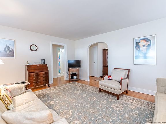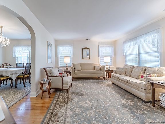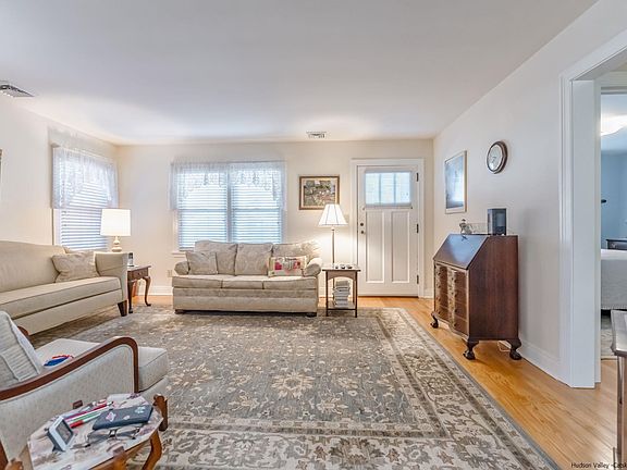 This Pristine Mid Century Home with great curb appeal located in Uptown Kingston is just a few short blocks from the Historic Stockade Area with great Restaurants, Shops, Stone Homes and Museums. All Walkable! For starters you have a lovely old fashioned front porch with solid wood decking to greet the neighbors. An original front door welcomes you into a nice sized living room with an arched entry into a formal dining room. There are beautiful original hardwood floors throughtout most of this home. The radiant heat in the floors keeps this home evenly heated and comfortable during the colder months. The adjacent eat-in kitchen with custom cabinets features Corian Counters, under cabinet lighting, tiled backsplash, pull out drawers and a pantry space. A back french door takes you to a glassed enclosed porch with a vaulted pine ceiling overlooking a beatifully landscaped private fenced yard and attractive over sized one car garage with automatic door. And that's not all! This home has central air, a whole house generator, a high efficiency gas boiler with 3 zones, Solar panels owned outright and the entire house has been reinsulated. Both the walk up attic and basement are immaculate giving you plenty of clean storage room as well. Don't miss out on this turn key home! Walk to Forsyth Park right up the road. Just 2 hours out of NYC with the Thruway entrance and Trailways bus station right Uptown. * Please note the chandelier in the dininng room does not stay.