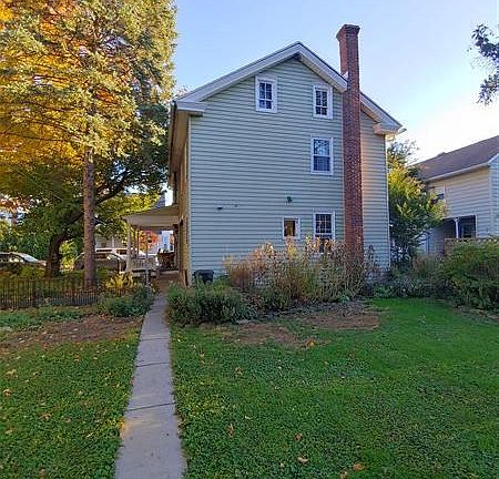 This property will be offered at Public Auction on Wednesday, November 30, 2022 @ 5pm. The listing price is the opening bid only and in no way reflects the final sale price. 10% down due at auction, 2% transfer tax to be paid by the purchaser, real estate taxes prorated. This charming, well-located, well-maintained home sits on a nice lot and boasts a detached 3-car garage and barn. The first floor of the home features a living room with wood-burning stove, dining room with built-in corner cupboard, kitchen with wooden cabinets and farmhouse sink, full bathroom with laundry, and large closet. The second-floor hosts three bedrooms, two with custom built-ins, a full bathroom with pedestal tub, large walk-in closet, hallway closet, and bonus room that could be used as an office, playroom, or whatever you may need! The full attic is finished but does not have heat. The basement hosts the mechanical and storage space. Relax in the large, fully fenced backyard, where you will find stone-lined flower beds, a large patio (with hot tub hook-up), raised garden beds and chicken coop with attached run. The 2.5 story barn could be used as a workshop or for storage and includes an attached garden shed. The three-car garage offers a single bay and 2-car bay as well as storage space. Additional amenities include a large covered front porch, newer roof (installed 2018), and walking distance to local shops, restaurants, the public library and the Amtrak train station.
