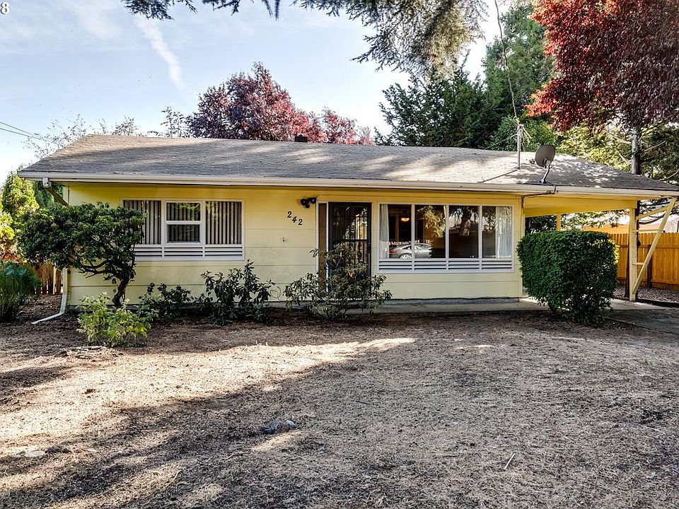 Adorable home with a nice floor plan! Fresh interior paint throughout! Large kitchen with dining area. Ductless heat pump for heating & cooling. Large back yard with garden area and a shed/shop with electricity. Interior laundry with washer & dryer included.