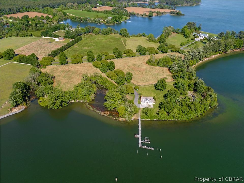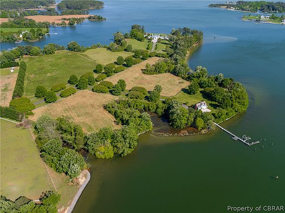 Heavenly expansive views & 1370 feet of magnificent waterfront on coveted Dymer Creek w immediate Chesapeake Bay access, this unique Estate sized parcel w quaint cottage offers limitless possibilities. Deep water dockage will accommodate multiple water craft, included 60 Ft+ boat, jet skis & more. The much desired location off Fleets Bay Rd is home to many beautiful Homes & Estates. 3 prime parcels make up this level, mostly cleared 13acre property with serene tree-lined entry offering privacy, sand beaches, additional building sites & is just seconds from Kilmarnock & considered Prime Northern Neck Real Estate . The sweet coach house, built in true Virginia style, provides gracious living space with balcony overlooking the water & a captivating, artistically designed kitchen with glass tile detailing & Bertazonni stove. Spacious bedroom suite with renovated ensuite bath will delight all. On the waterside, 2 classic garage bays with arched windows & brick detailing, feature extremely tall ceilings, a large heated workspace plus boat storage & plenty of room to tinker; a boat lover’s dream. The charm & serenity of 242 MiFarm will transport you to a simpler time.