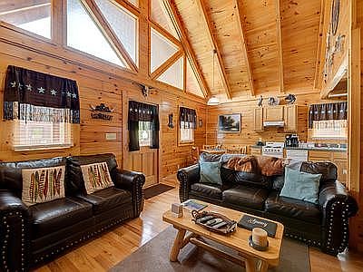 Awesome cabin in convenient location. $36,000 in gross rental income in 2019. Eight panel windows allow the natural sunlight to enhance the beauty of the natural wood. Level parking, new HVAC in 2018, new carpet, gleaming hardwood floors, private hot tub and all this just a minute from all the action on the Parkway.Drone pic doesnt indicate view.