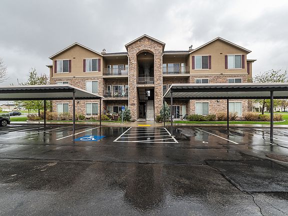 Come fall in love with this beautifully kept luxury condo with 3 bedrooms, 2 baths with incredible floorplan and tasteful upgrades throughout! Entertain friends and family in the enormous kitchen and open family room. Enjoy the knotty alder kitchen cabinets, granite countertops, oversized kitchen bar, tile flooring, & 9ft ceilings! Treat yourself to the enormous master bedroom, walk-in closet, and adjoining on-suite bath. With 2 more large bedrooms, spacious bath, and laundry room, this is an incredible home & investment property! This property is 3 minutes from I-15 and 10 minutes from Brigham Young University & Utah Valley University. The new schools, shopping, and bustling community make this an incredible value! This great property will not last! Call today for your private showing. Square footage figures are provided as a courtesy estimate only and were obtained from County Records. Buyer is advised to obtain an independent measurement.