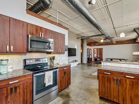 The Rumley Lofts, Unit 2E in the heart of Old Town! 2 bdrm 2 bath on the 2nd floor. This unit comes with one parking stall in the basement designated for 2E. You will love this historic building living experience with tall exposed ceilings, tall windows and brick walls with lots of natural lighting! Concrete floors, with an open concept. Kitchen features lots of cabinets, granite countertops, tile backsplash and stainless steel appliances. Master suite includes a spacious bath with double sinks, 2 walk-in closets and a whirlpool tub. Completely equipped work out room on same floor along with an entertainment/community room on the 1st floor for all your needs! The community rooftop provides a spacious area for entertaining along with a kitchen and bathroom! A separate designated storage area is included on the 2nd floor in back hall stairway exit area. Walk to many shops, restaurants, sporting events and concerts! Downtown Wichita living at its best!