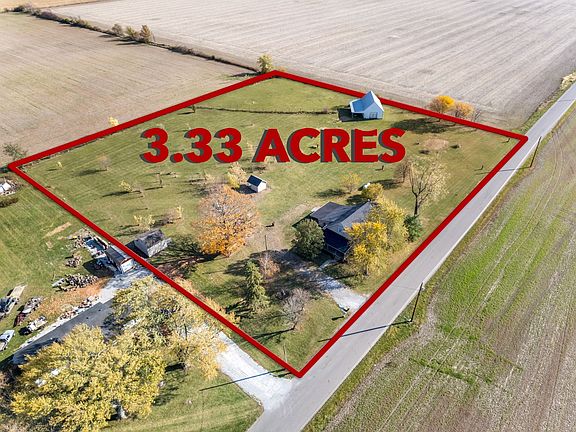 Country views surround this 3.33 acre property and create a picturesque backdrop for the 2,568 SF home. With 5 bedrooms and 2 full bathrooms, there is plenty of space for everyone. The main level features a great room with electric fireplace, kitchen with hickory cabinetry and appliances that remain, spacious laundry room, office nook, three bedrooms, and two full bathrooms. Upstairs, two more bedrooms connect with a third space that could be ideal for a rec space or craft room. The level yard includes 37' x 22' pole barn with carport attached, 16' x 12' shed with lean-to, and partial farm fencing toward the back of the property. The home also includes Lorex camera system and an exterior pad ready for hot tub. Property is Henry County zoning agricultural (A-1) allowing for a wide range of uses.