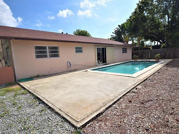 So much potential! This 2000 sq foot East Boca Pool home is zoned for A-rated Boca schools, minutes to beaches, Mizer Park, and I95. Three bedrooms in main house plus two bonus rooms which could be used as additional bedrooms or den and office. 4th bedroom is a converted garage apartment with separate entrance. Approximately half of the garage was left for storage. Could easily be converted back to a 2 car garage. Spacious master suite with en suite bath and walk in closet. Both additional bedrooms in the main house have walk in closets. Plenty of room in side yard for boat or RV parking. Charming front patio area great for entertaining.
