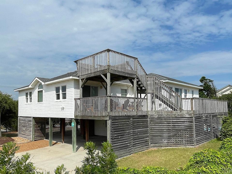 Homes in this part of Southern Shores rarely come on the market. This quintessential beach house is located on a quiet street just steps from the beach. The lot is large enough to hold a full-sized swimming pool and volleyball court and has enough area for other fun activities. There is a large area under the house that can be used for parking and creates a dry entry through garage or the main entry. The outdoor shower is located in the back yard, close to the pool. The ground level has a playroom that supports a pool table and a foosball table. Just slide open the door here and you can be swimming in the blink of an eye. The bedroom on this level is large enough to fit two full-over-twin bunk beds. The first floor of this amazing home has an open floor plan with plenty of room for lounging, eating, and cooking. Cozy up to the gas fireplace when the weather turns chilly. There are numerous decks with enough space to gather or find peace and quiet. One can climb up to the roof top deck and enjoy the views. Out of the 4 bedrooms two of them have en suite bathrooms. This home has been well maintained and has had several improvements including: the following: Water heater (2021) Roof replacement (2019) HVACs lower level (2017) upper level (2019) Kitchen refrigerator (2019) Washer (2021) Dryer (2018)