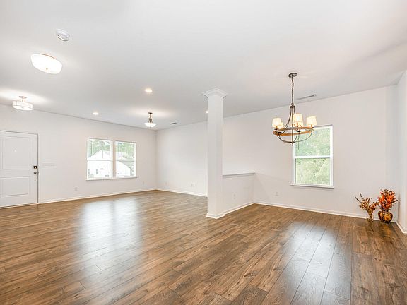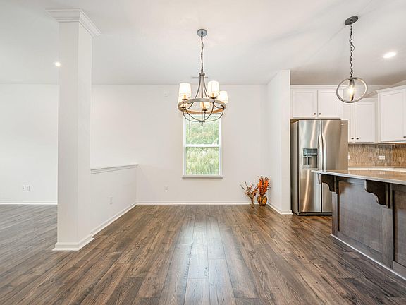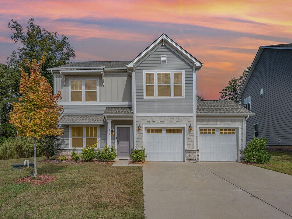 Welcome to this thoughtfully designed Craftsman-style home, where timeless architectural touches like shake shingles, stacked stone, and board and batten siding create irresistible curb appeal. Nestled against peaceful wooded views, this home offers a tranquil retreat with the perfect blend of style, space, and function. Step inside to a spacious and sunlit open-concept layout that effortlessly connects the family room, dining area, and kitchen, ideal for everyday living and entertaining. Wide plank luxury vinyl flooring flows throughout the main living area, offering both beauty and durability. The chef-inspired kitchen is a true centerpiece, featuring crisp white cabinetry, sleek, quartz countertops, stylish tile backsplash, stainless steel appliances, a large center island with pendant lighting and breakfast bar seating. Adjacent to the kitchen, a flexible bonus room provides the perfect setting for a formal dining room, home office, game room, or creative space, all filled with natural light and backyard views. Just off the garage entry, you'll find a convenient drop zone for coats and gear, a powder room, and a storage closet for keeping everything in its place! Upstairs, retreat to the private primary suite at the back of the home, offering serene views of the woods, abundant natural light, and a spa-like ensuite bath with dual-sink vanity, garden tub with large picture window, private water closet, and spacious walk-in closet. Three additional bedrooms, a full hall bath with a dual sink vanity, and a centrally located laundry room with built-in storage complete the upper level. Enjoy peaceful outdoor living on the private back patio overlooking the natural wooded backdrop, a perfect place to relax, grill, or entertain. Community highlights include: location in the desirable Tillery Tradition community in Mt. Gilead, where residents can enjoy country club amenities (membership required) including scenic walking trails, a pool, 18-hole golf course, and an exclusive on-site restaurant. Note: Golf course, club house, and pool access are not included in HOA dues. Adventure awaits nearby by exploring the great outdoors with Morrow Mountain State Park just to the north and Town Creek Indian Mound State Park to the south, both within 10 miles and offering hiking, paddling, fishing, and camping. Conveniently situated between Albemarle, Mt. Gilead, and Troy, this home offers the best of country living with easy access to city conveniences, shopping, dining, and entertainment all within reach.