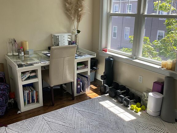 Welcome to this four bed, two full bath, plus office located on the second floor of a three unit detached home. Hardwood floors throughout, central air and laundry in unit. Open floor plan, deck and one parking space included. Located in a residential area of Eastie, this unit was newly renovated. First, last, security and broker fee due upon lease signing. Available 9/1! Video tour available upon request.