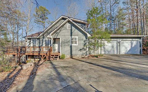 DEEP WATER Lake Front on Nottely. 3BR/3BA plus office and loft. Open Plan w/ cathedral ceiling and Oak floors in Great room. Wood beams & custom windows accentuate this Space. Spacious Dining area.Kitchen offers pantry and extra cabinets. Huge master BR/BA w/ cathedral ceiling,jetted tub, dbl sinks, shwr, and water closet. Gas log fplc w/ fieldstone face to ceiling. 2 Open lofts. 3 Sliding Peachtree triple doors lead to the lakeside. Wonderful screened living porch. COVERED BOAT DOCK w/ Dble platform. Deck next to the lake as well. 2 Car garage. Approx 3 miles to town and on a major channel. 07/25/15