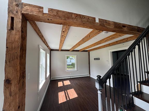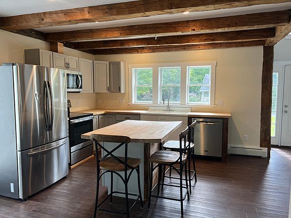 Newly renovated 3 bedroom 2 bath farmhouse, original 1800s structure with exposed beams throughout. 2 bedrooms and 1 full bathroom upstairs, 1 bed and 1 full bath downstairs. Washer and dryer in unit. Backyard connects to Houston Field trail system. Wifi, plowing, and trash is included. Communal parking and lawn area.