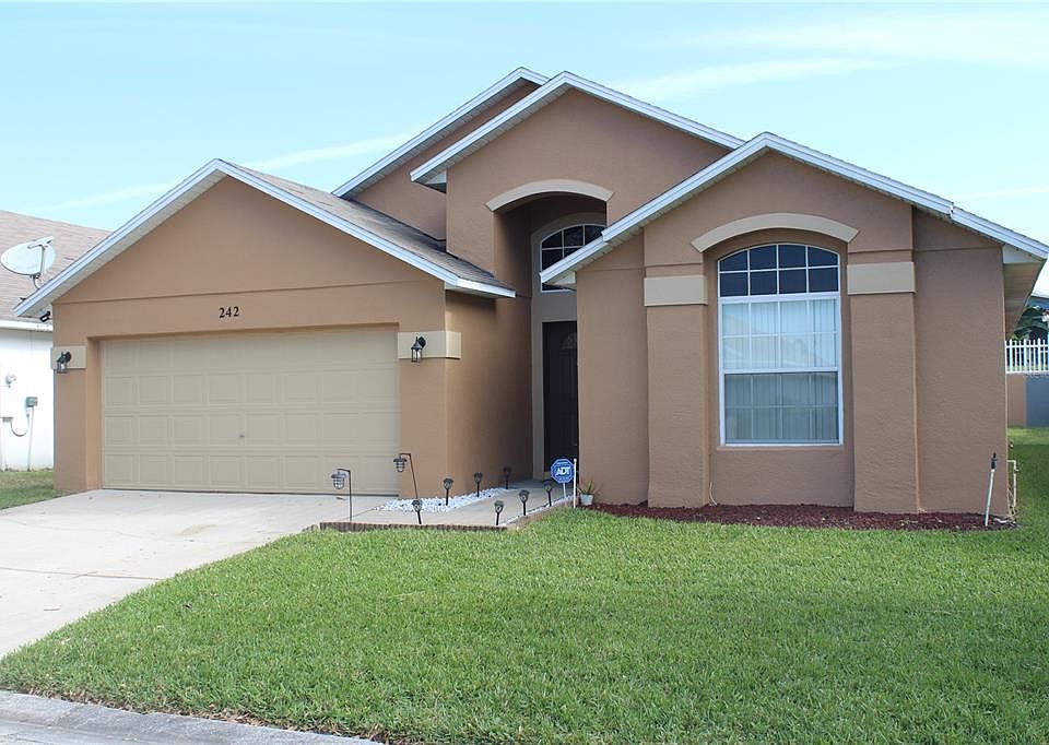 Look no further!!! PRICED TO SELL and Seller providing $5,000 TOWARDS CLOSING COSTS!!! The home features many recent enhancements - NEW ROOF (Feb 2023), NEW EXTERIOR PAINT (Dec 2022), NEW SOD (Sept 2022) and recently added appliances and security system (2018). Furniture is negotiable to make it turnkey for investor or first time homebuyers! If you are looking to relocate, a first home, an investment property or a vacation destination this home in the highly desirable Four Corners neighborhood is it! Move in ready, this well maintained single story 3 bedroom, 2 bath home boasts MODERN living within a RELAXED environment with easy access to many desirable central Florida shopping and attractions. Upon entering you’ll be greeted with a SPACIOUS multi-purpose space, perfect for an office, dining room or living room complete with an electric fireplace and storage. The hallway leads to the MODERN, open kitchen with movable island for flexibility, pantry and eat-in kitchenette space overlooking the LARGE family room, perfect for a relaxing evening or entertaining friends and family. A SLIDER in the living room and master bedrooms allows for natural light to come in while accessing a covered back patio leading to an OVERSIZED yard, perfect for a pool or recreation purposes. The interior split floorplan allows for PRIVACY. The SPACIOUS master bedroom suite comes completes with walk-in closet featuring BUILT-IN shelving and a master bathroom with remodeled tub and UPGRADED shower. To the left of the home is the second and third bedroom and bath. The laundry space conveniently located between the garage and kitchen INCLUDES WASHER & DRIER. The OVERSIZED 2-car garage allows for extra storage space and features a work table and storage. Vaulted ceilings in the common areas adds to the spaciousness. An UPGRADED ALARM system compliment multiple SMART features such as a smart thermostat, smart doorbell and smart interior lights are included for peace of mind. The HOA includes many perks such as a community pool, basketball courts and low HOA fees. This retreat is just minutes from Disney, dining, shopping and multiple major highways. Easy access to other Florida attractions makes this a must-see! Do not miss this opportunity, schedule a showing today!