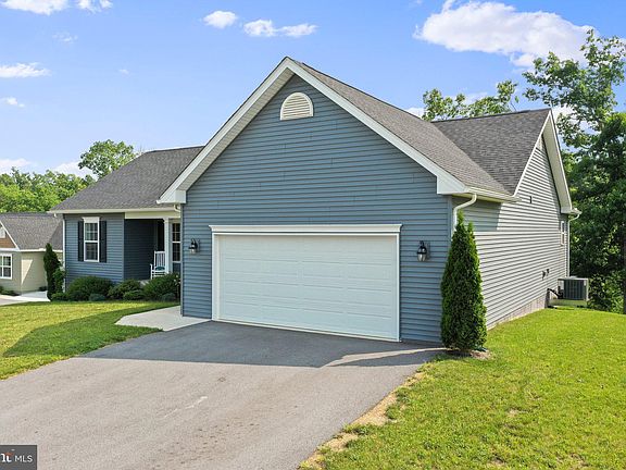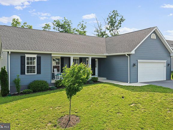 Offered for sale is this gorgeous 3 bed, 2 bath ranch-style home located in the desirable Bridle Creek community of Martinsburg, WV. This home has a split bedroom design and features an open-concept floor plan. Highlights of the main living area include the beautiful light brown LVP floors, quality painted cabinets, stainless appliances, and white quartz countertops. On one end of the house, you will find two bedrooms and a hall bath. The opposite end is home to the primary bedroom featuring a large walk-in closet and ensuite bath. This bathroom includes a dual vanity and a large walk-in shower with a frameless glass door. The laundry room is conveniently located near the primary bedroom and garage entrance. The garage walls have been insulated, drywalled, and painted. In addition, a platform has been installed at the stairs to the interior door. The platform's flooring is designed to lift up, which makes for an excellent storage solution. The full walk-out basement remains unfinished, providing a blank slate for new owners to finish to fit their needs if desired. The basement leads out to a large patio shaded by the above deck. The rear of the house has a private setting not found with most homes in the community. The lot backs to a wooded area, and a path from the backyard connects with the community nature trails that meander throughout the neighborhood. Some of Bridle Creek's amenities include a basketball court, pavilion, playground, and a private fishing pond. Schedule a private tour of this beautiful home today!