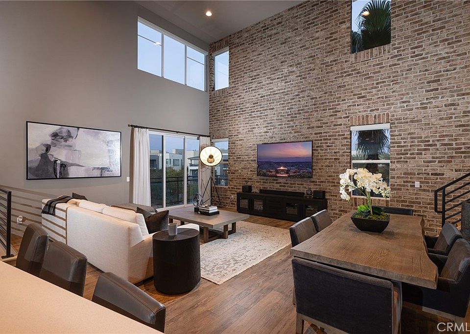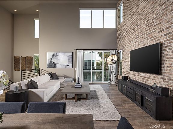 Ideally positioned on a corner, this highly upgraded Manhatten townhouse offers exceptional views of the Irvine Financial District creating a picturesque backdrop for your daily living. Upon entering, the high-volume ceilings seamlessly blend with expansive windows creating a bright and airy atmosphere flooded with natural light. The combination of high ceilings and an open-concept design amplifies the sense of space. The main floor living offers an appealing wrap around balcony that expands your entertaining opportunities and elevates your lifestyle. Enjoy a main floor primary suite, secondary bedroom, and laundry followed by a third bedroom and loft upstairs embracing the open-concept living. This is truly the epitome of resort-style living featuring amenities such as a Junior size Olympic pool and spa, pickle ball court, fitness facilities, community event center, and lush landscaping throughout. Step into a lifestyle where luxury meets convenience located in close proximity to John Wayne Airport, UCI, world class dining and shopping, and Orange County beaches.
