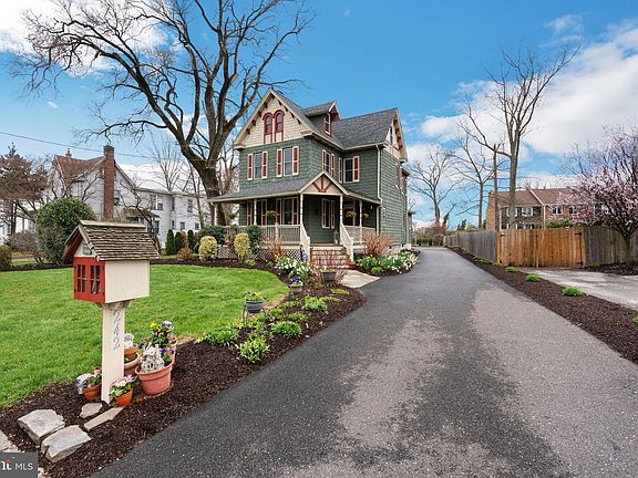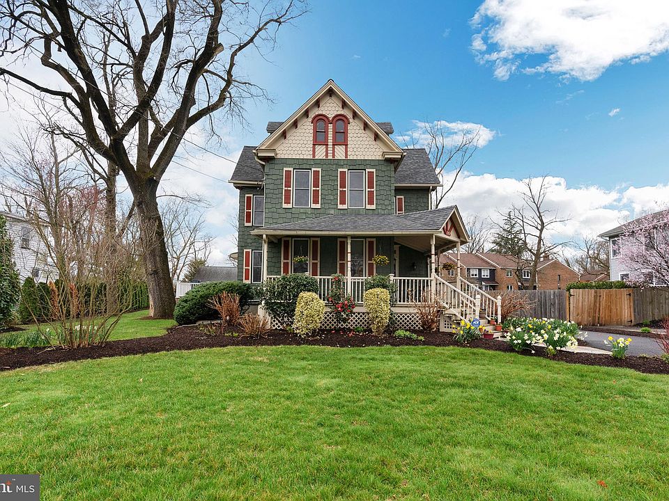 Opportunity is knocking! This stunning Victorian has been lovingly updated over the last several years. The property welcomes you with a gracious front porch. Upon entering you will find a beautiful foyer where you get your first glimpse of the newer wide plank hardwood flooring that extends throughout the main floor. There is a spacious formal living room as well as a large family room with a gas stove. The formal dining room has been repurposed into a second office space but can easily be a beautiful dining space complete with a closet for a hidden second refrigerator, ideal for family gatherings. The highlight of the main floor is the gourmet kitchen which was fully renovated in 2015 to offer new KraftMade cabinetry with soft close doors and drawers, quartz counter-tops, a large island which offers a drawer microwave, hidden garbage drawer and seating for at least 4 people as well as a full stainless steel appliance package. The kitchen also has recessed lighting and is wired for speakers. The second floor offers a spacious primary suite complete with renovated bathroom and walk-in closet. There are two additional bedrooms on this level as well as a large second full bathroom. On the third floor you will find two more bedrooms as well as a good sized storage room. Other improvements to note are the deck off the kitchen, the flagstone patio (2017) the new portico, a full roof replacement (2019), the fantastic oversized 2 car detached garage (2009) and many replacement windows including 3 new skylights in the kitchen.