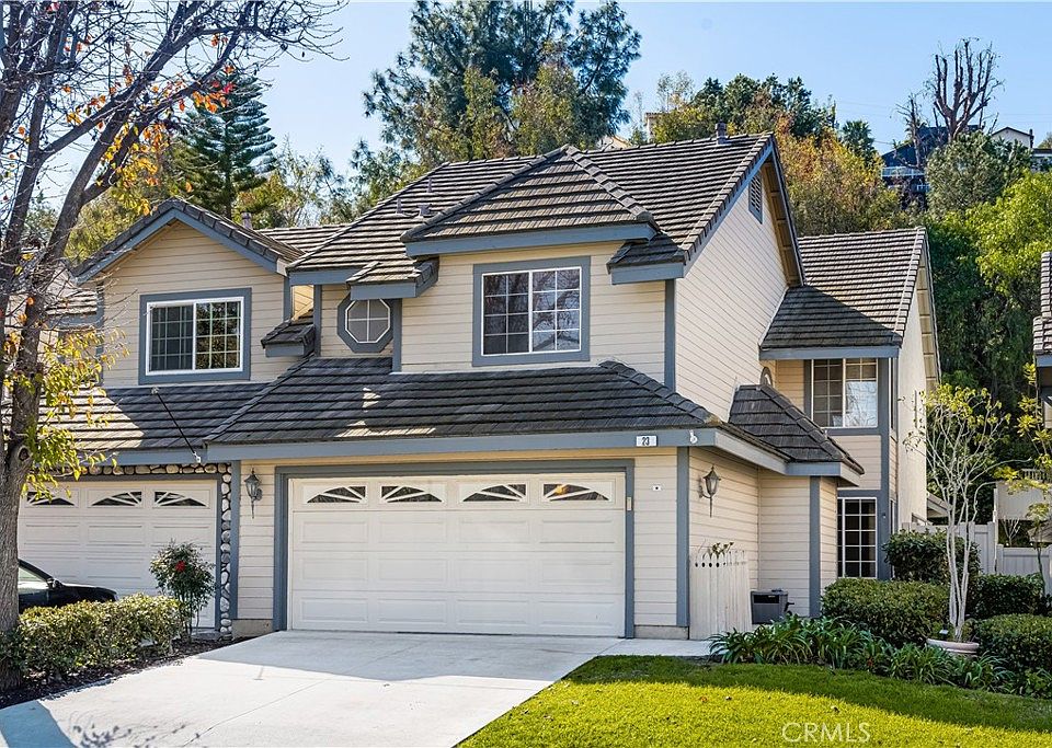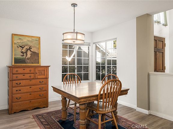 Nestled in the serene community of Stonehenge, this delightful property boasts 3 bedrooms and 2.5 bathrooms. Upon entry, you're greeted by a spacious living room adorned with vaulted ceilings and a charming fireplace, creating an inviting ambiance. Ascend the stairs to discover the second floor, where all the bedrooms await. The open floor plan seamlessly connects the living room to the dining area, featuring a peek-a-boo wall and expansive windows that flood the space with natural light. Adjacent to the dining area is the well-appointed kitchen, complete with ample oak wood cabinets, abundant counter space, a breakfast bar, and updated stainless steel appliances—a perfect blend of style and functionality. Escape to the lush and private backyard, enveloped by mature trees, offering an ideal retreat for relaxation or entertaining guests. A convenient half bathroom on the main floor adds to the home's convenience. Upstairs, the primary suite beckons with an en-suite bathroom and generous walk-in closets, providing a peaceful sanctuary. The remaining bedrooms share a dual-entry bathroom with a dual sink vanity, ensuring comfort and convenience for all occupants. Additional features include a two-car garage for parking convenience and access to community amenities such as a tennis court, pool, and gated entry for added security. Don't miss the opportunity to make this charming property at 242 S Crawford Canyon Road, Unit 23, your new home!