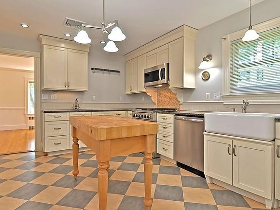 If a downtown Andover location is important to you, you'll love this property. Unique in its double lot, the charm and detailing combined with tasteful high end updates will leave you ready to move in right away. So close to Philips Academy and all the school offers for the community and an easy stroll to downtown Main St shops and restaurants. Inside, the foyer opens to the front living and dining areas and leads to the chef's kitchen. This is loaded with upgrades and the butcher block island is the centerpiece for both entertaining and prepping meals. Relax in the rear sun room that is surrounded by windows overlooking the garden and back yard. Four bedrooms upstairs includes the master bedroom with double closets and a fireplace. Hall bath has upgraded tiling and a soaking tub. The finished lower level has space for both a media room and play room. Walk up attic has loads of storage. Enjoy the grounds, with perennial plantings, privacy, lawn and gardens to play and room for a pool.