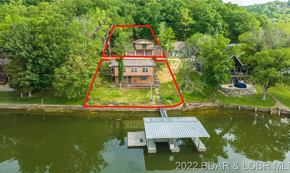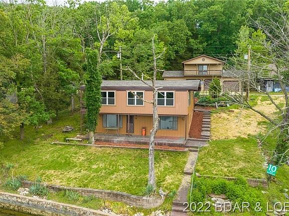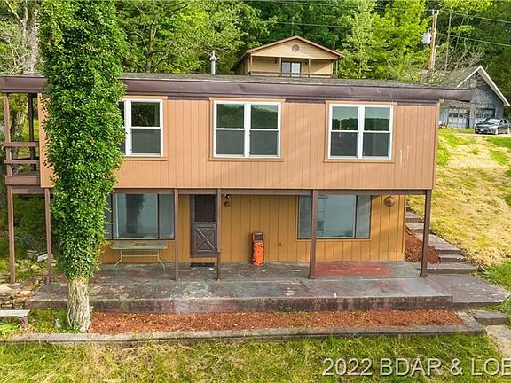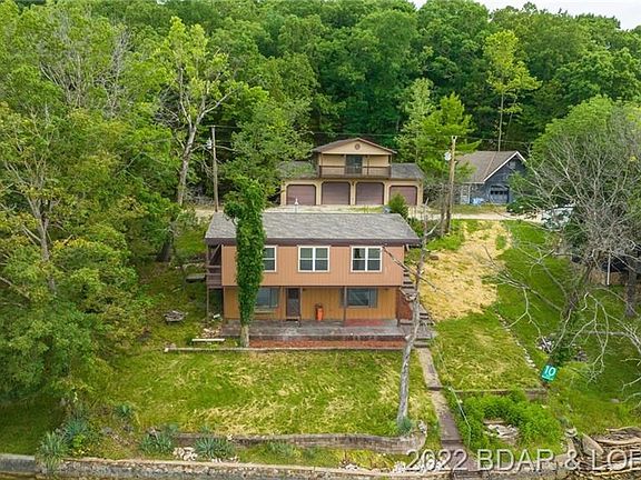 Lake front fixer upper on the Big Niangua 10mm. Property includes a large 4 car garage with living quarters above. (would be a great studio apartment/3rd bedroom) Main house consist of 2 bedrooms, stone electric fireplace, large open area on lower level can be turned into whatever you desire. Home has had new drain tile installed, newer roof & fresh paint. This will make a excellent project home and would make an excellent rental property.