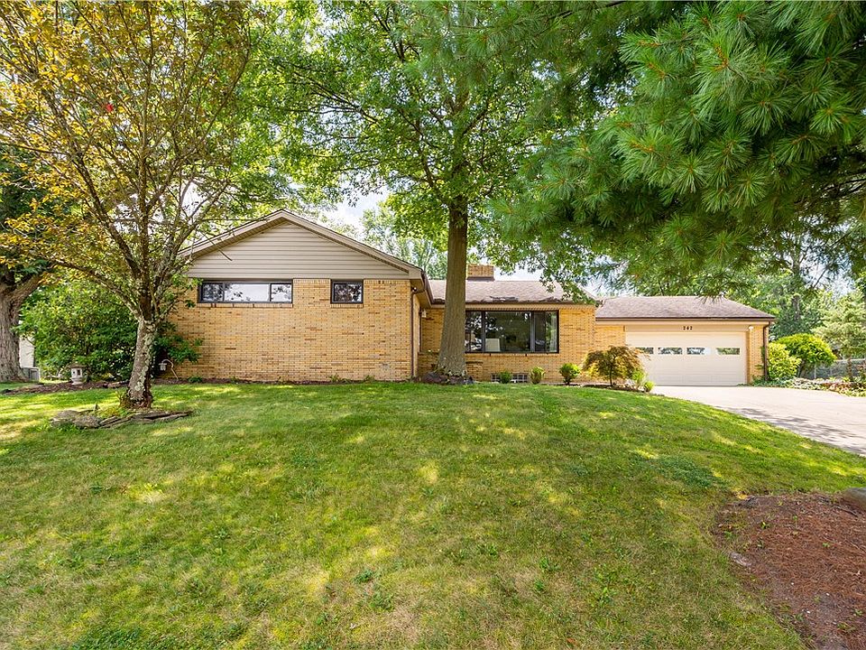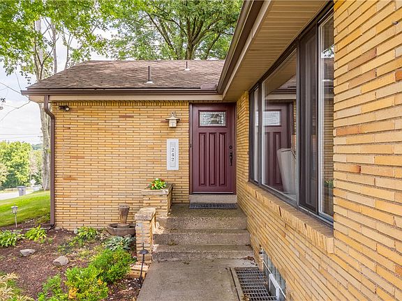 Situated on a dead-end street in the Peters Township School District, this sprawling brick ranch sits on a fenced half-acre lot. Inside, you'll find hardwood floors throughout the main level, a huge living room with 1 of 3 fireplaces, & endless original charm. The kitchen boasts white cabinetry, granite countertops, under-cabinet lighting, & a skylight that floods the space w/ natural light. The primary bedroom includes an en-suite w/ an updated vanity & preserved mid-century tile, while the guest bathroom offers a luxurious jetted soaking tub. A massive sunroom w/ a new wood-burning stove adds nearly 500 square feet of year-round living space. The finished game room features a brick fireplace, mid-century built-ins, & a stone dry bar. The oversized laundry room includes a laundry chute, a cedar walk-in closet, & a Pittsburgh potty ready to be converted into a powder room. A large unfinished storage area offers endless potential—ideal for a home gym, office, or playroom. A rare find!