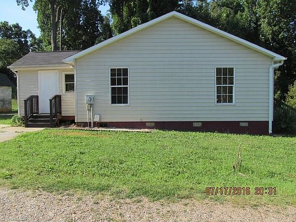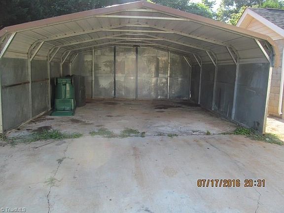 Spacious One Level Living with Low Maintenance Vinyl on a Flag Lot. 3 Bedrooms, 2 Full Baths with an Open Floor plan and Large Yard. Breakfast/Dining Area opens into Kitchen and Living Room. 2 Car Detached Carport in Rear. Convenient Location and Close to Greensboro, High Point, & Beyond. Sold AS IS, where is, with BUYER to verify all info. Price reflects condition and priced UNDER Tax Value. SURVEY IN ATTACHMENTS-shared drive.