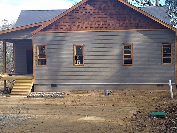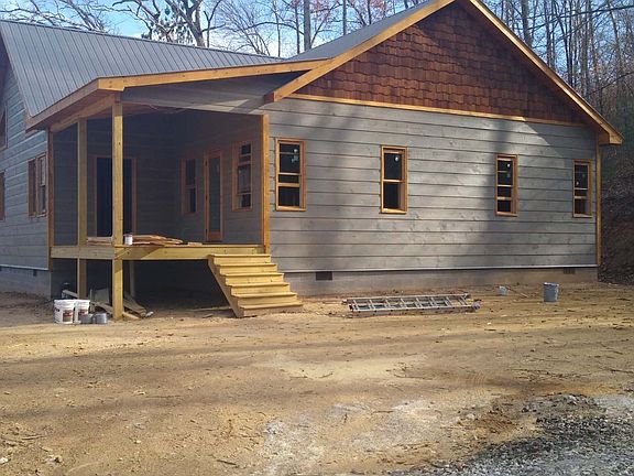 Beautiful "New Construction" Ranch style home located in close to Downtown Blue Ridge Staurolite Mtn featuring open floor plan w/ rustic compliments, rough sewn flooring, granite throughout, 3x6 large tiled shower and 6' double bowl vanity in the master, private master deck, large closets, pantry, laundry room, large island in the kitchen, coffee station, rock fireplace from floor to ceiling, rock foundation on the exterior, and 2.13 acres of nice level property to enjoy. Sit on the front porch and listen to the sounds of babbling water. $3000 Appliance Allowance included.