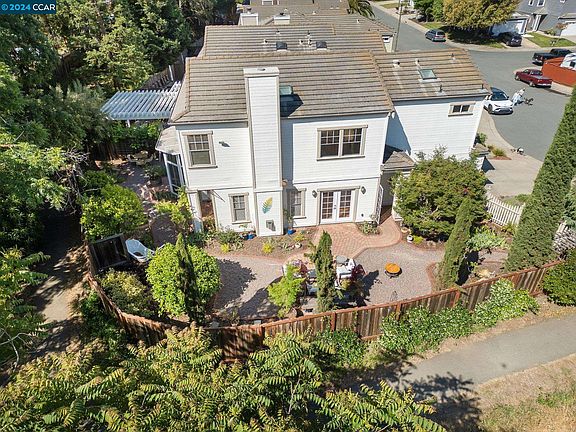 Location, location, location! This charming home is located on a corner lot tucked away at the end of the cul-de-sac adjacent & backing to walking trails. Extensive custom touches & upgrades including striking tinted concrete flooring throughout first level which lend to the contemporary & spacious feel of the open concept kitchen/dining/entertaining area. Gourmet kitchen features granite tile breakfast bar island, tile counters plus an abundance of custom cabinets, a wall of pantry style cabinets & new appliances. Large great room offers custom scrolled tile gas fireplace with column detailing which is the focal point of this room & is flanked by large sunny windows and French doors to one of the multiple patio areas. Expanded dining area is a bay of windows that blends inside & outside perfectly. Two primary suites plus expansive loft are on the second level and offer views of hills/open space. Updated primary bath boasts separate soaking tub, floating vanity with dual sinks, & large tile shower plus huge walk in closet. Fantastic lot offers a tranquil oasis featuring meandering brick trimmed aggregate paths & paver patios, multiple seating areas, covered patio, multiple water features surrounded by colorful flowers, various trees and ornamentals.