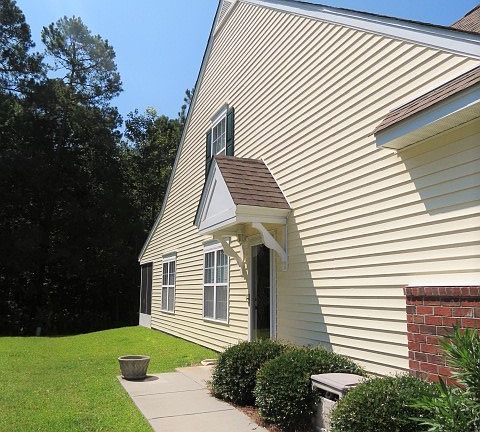 Enjoy maintenance free townhome living in the heart of Summerville in this beautiful community. This master bedroom down home also backs up to wetlands for pure privacy and ambiance, has 2 large bedrooms upstairs with a big full bath. The kitchen is huge with a floor to ceiling window, tons of cabinets and counter space, it also has a screened in porch large enough for entertaining, attached 1 car garage with extra storage closet and a double driveway for easy parking convenience and since it’s an end unit plenty of natural light. The carpet will need to be replaced due to some areas of damage, but very clean and move in ready with the option to buy any remaining furnishing that are still in the home. Never worry about maintenance since the HOA covers all your lawn work, irrigation system, external hazardous insurance, neighborhood pools, termite bond, pressure washing of the homes, and your water/sewer bill is even included. All you have to do is enjoy life in this beautiful neighborhood convenient to plenty of shopping, less than 5 minutes to the Sawmill Branch paved walking & bike trails, less than 10 minutes to Downtown Historic Summerville, and less than 10 minutes to I-26. Don't miss the opportunity to make this house your place to call home! If schools are important, please verify.