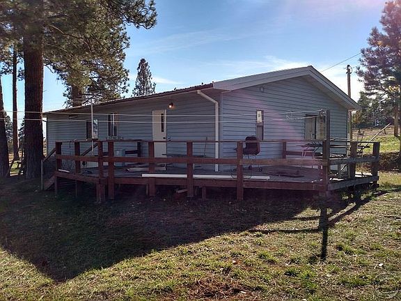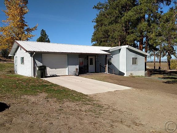 1987 28' x 46' Manufactured home on permanent foundation with addition family room and single attached garage, 12'x24'x 8' high carport, 12' x 24' x 12' high camperport. 3 bedrooms, 2 full bathrooms, open kitchen/dining area. Home is with updates: new toilets, 2017. New bath and showers. New carpet 2017. New linoleum 2018. New windows 2018. New interior doors, 2018. New 10' x 20' shed with loft. Over 356 sq. ' partially covered deck. Handicapped accessible. Sloped property, LARGE Pondersa pine trees, 3 stall lean-to outbuilding. Property is completely fenced with field fence. 60 mile views of the Bitterroot valley, the Sapphire Mountains, Bitterroot Mountains and Rattlesnake Mountains.