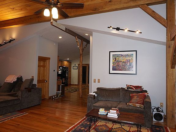 Raised ranch with timber frame addition. Hardwood floors throughout, pine ceiling, and new roof. Closed-cell, spray foam insulation in the ceiling and spray-in cellulose insulation in the walls. Large two car garage with plenty of dry storage.