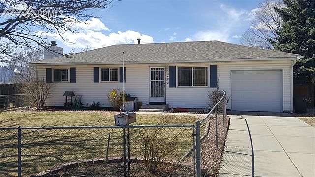 Well cared for ranch style home located in a cul-de-sac with mountain and Pikes Peak views! It has a huge master bedroom and another main level bedroom, and a bedroom downstairs. There are 2 full bathrooms, one up and one down. The family room is good-sized and has a gas fireplace perfect to cozy up to on cold winter evenings! Off of the kitchen is a addition that can be a nice-sized dining room. Outside is a large yard with a covered patio area for summer bbq's and a storage shed to store those "toys". Front yard and back yard are both fenced. Come take a look!