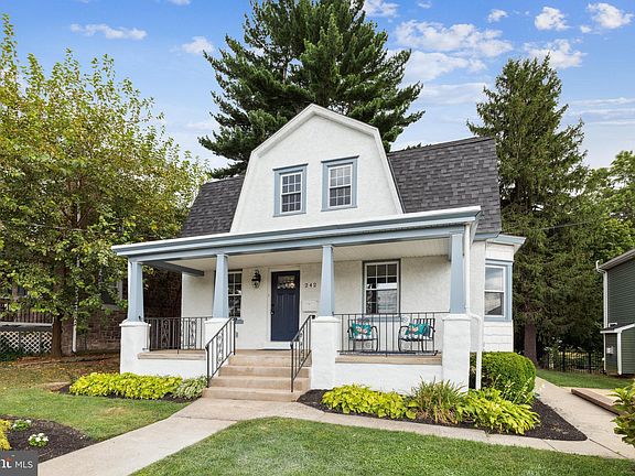 Rare opportunity to own a fully updated single family Dutch Colonial in the heart of Ambler Borough. This newly rehabbed 4 bedroom, 2 full bath home spanning 2,400 SF, is a mixture of old world charm and contemporary new amenities including all new bathrooms, new kitchen, new windows, newer roof, a generator, new hot water heater, new electric throughout, new light fixtures and all new plumbing for years of worry free living. The front of the house has major curb appeal with fresh new landscaping, new craftsman styled columns, a freshly painted exterior and a full front porch with sitting area. As you enter the new front door, you are greeted with refinished original pinewood floors, views of the living and dining areas and beautiful original trim and molding. The living and dining areas are spacious and have new light fixtures, have been freshly painted and have great natural lighting from the many new large windows. The new kitchen is spectacular and features a custom tile backsplash, recessed lighting, modern new stainless steel appliances, soft closing, all wood white and navy cabinetry, quartz countertops and a breakfast bar seating area. The basement entrance is off to the side and has a main level spacious pantry. Through the kitchen is the convenient first floor laundry room with access to your first floor full bathroom with new luxury waterproof vinyl flooring, new vanity and lighting, new toilet and new shower with glass enclosure. The rear door exits onto your spacious trex deck and out to your large backyard with plenty of space for barbecues and family entertainment. The newly refinished hardwood floors continues upstairs, where you will find 4 substantial bedrooms with ceiling fans and ample closet space and charming original features such as a built in bookshelf and original molding. The primary bedroom is spacious and features a walk-in closet and charming enclaves. The full bathroom on this level contains a new large double vanity with granite countertop, a built-in linen closet, new toilet and a tub/shower combo with all new custom tile. Rounding off this house is the full basement that offers plenty of storage and flex space and houses an enclosed utility room where the HVAC unit and new hot water heater is located. The location of 242 Trinity Ave is fantastic! Situated in the highly-rated Wissahickon School District, the home is located just a few houses away from Pickering Field Park, blocks away from all of the great dining and shopping that downtown Ambler has to offer. The Ambler train station is also just blocks from the home providing an easy commute into the city. Don’t miss the opportunity to call this your home, schedule an appointment today!