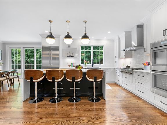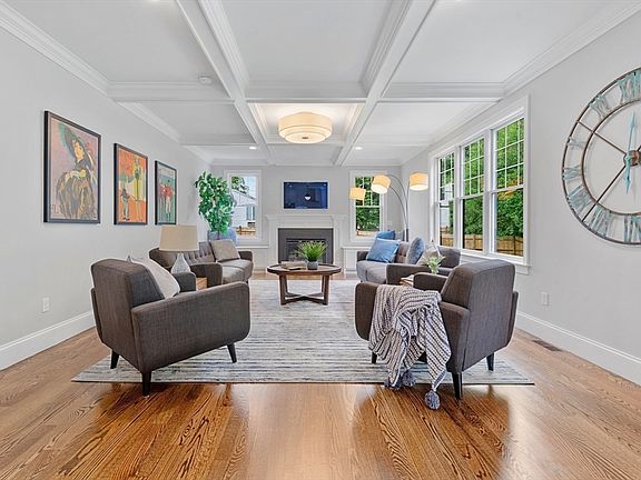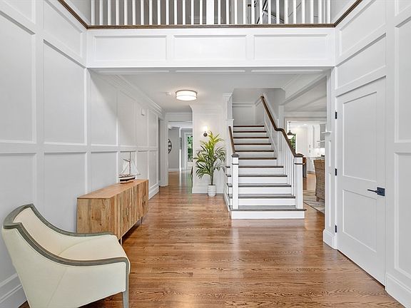 Exceptional new construction offering 5,700 sq ft of lavish living space on a private half-acre lot in a highly desirable neighborhood with top-ranked schools. Thoughtful design, custom millwork, hardwood floors, natural gas and upscale finishes throughout. The chef’s kitchen features quartz countertops, shaker cabinetry, a large center island, stainless steel appliances, & wet bar, opening to a fireplaced living room with coffered ceiling. The expansive primary suite includes a walk-in closet with custom built-ins and quartz island, and a spa-like bath with freestanding soaking tub, oversized double shower, and quartz vanity. Three generously sized bedrooms and two full baths complete the second floor. A sun-filled 3rd-floor bedroom offers a full bath and walk-in closet. The finished lower level adds a bed with full bath, gym, & playroom. Additional highlights include an oversized mudroom w/ cubbies, laundry with sink and storage, two-car garage, and a large landscaped yard