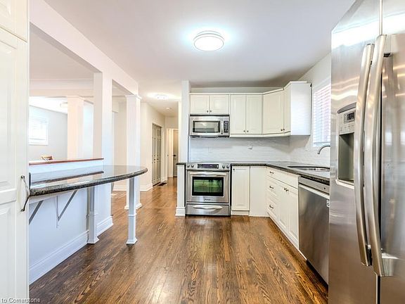 LEGAL DUPLEX..Beautiful raised bungalow located on a quiet street in the desirable West Mountain area, just minutes away from the escarpment, parks, schools, shopping, and highway access. Main Floor: This spacious 2-bedroom + den (or dining room), 1-bathroom floor plan offers an open concept living space. The original hardwood floors have been beautifully maintained throughout the main level. The large living room/dining room area features a picturesque window that lets in plenty of natural light. The updated eat-in kitchen boasts stainless steel appliances, marble counters, and a large built-in eating area overlooking the living room. The 4-piece bath has been recently renovated. Lower Level: Newly renovated open-concept 2-bedroom, 1-bathroom unit with high-end finishes, currently leased at top of the rental market. ***Rental income helps qualify for your mortgage payments*** Upgraded Electrical Service – 200A – separately metered units, Above code sound dampening – Sono pans in basement. Property has been virtually enhanced and staged