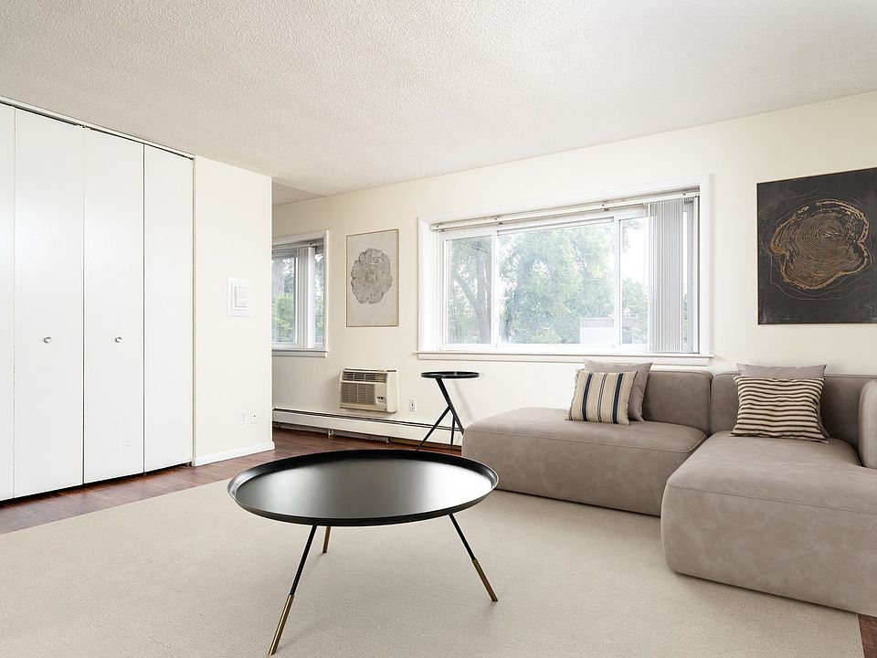 Sits between downtown and uptown Minneapolis near lovely Stevens Square Park. Spacious apartments with large windows can be enjoyed by you and your cat (s) (2 cats allowed). Moving in will be a breeze with the help of elevators, carports and limited off street parking. Many restaurants and stores within walking distance. The #2 bus line is right across the street.