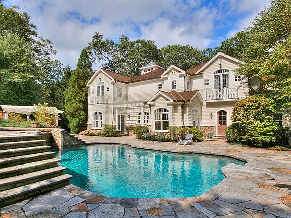 Nantucket-style Stone & Shingle estate made with the highest quality materials and custom details resulting in a unique and luxurious interior including the dramatic 40-foot entrance hall. Wonderful interior and exterior entertaining spaces including the pool with spa and waterfall, pergola covered poolside bar with full kitchen all wired with sound and lighting. Elegant master suite with gas fireplace, balcony overlooking the outdoor space and lavish bath with radiant heat floors. Chef's kitchen with breakfast room, living room with adjacent music room, formal dining room with fireplace and butler's pantry, library and separate study, two rec rooms, exercise room and wine cellar.