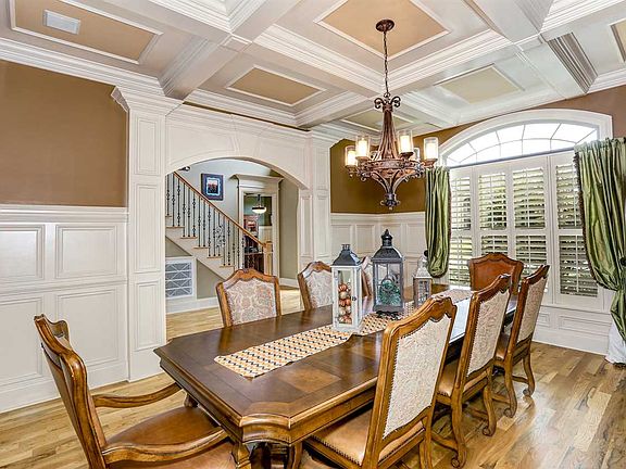 - DINING ROOM DESC: Wood Floor, 10? + Ceiling, Smooth Ceiling, Chair Rail, Crown Mold