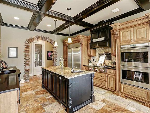 Prepare to be blown away w/trim & attention to detail in every room! The main floor boasts a large study & dining rm w/coffered ceilings, great rm w/fireplace that opens into a huge kitchen & bkfst rm, a huge, isolated master suite w/gorgeous glamour bath & mind-blowing custom closet, & another bedroom w/full bath. You'll love making meals w/an island w/vegetable snk, dbl oven, commercial gas cook-top, built-in fridge/freezer, & a walk-in pantry w/power for small appliances. Upstairs, unwind in your own home theater, 2 bedrooms, each w/full baths, & giant bonus rm. Outside, relax on the screened patio, or on the open patio w/grill & brick fireplace. Laundry rms on both floors make life easy!