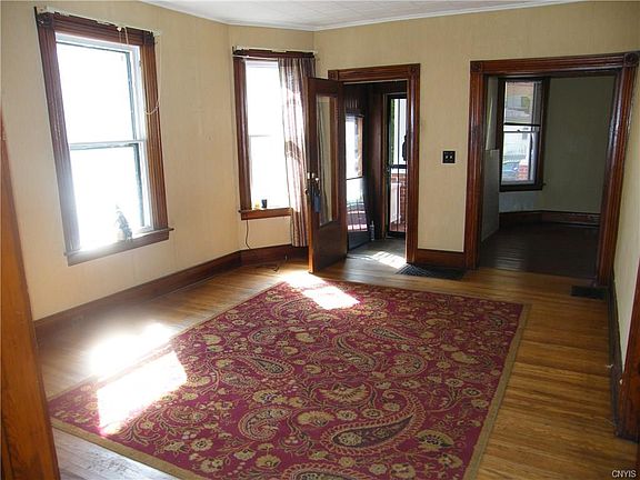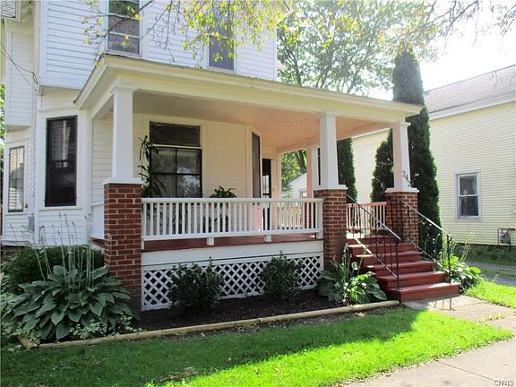 SPACIOUS 3 BEDROOM COLONIAL WITH DETACHED TWO CAR GARAGE. Charming home with lots of character, original woodwork and period details. Great curb appeal, with large covered front porch. There is a spacious living room with separate front sitting room/den, formal dining room and big eat-in kitchen. There's a first floor bedroom, full bath and first floor laundry. Upstairs is a large, open area ideal for an office or sitting area and two generously sized bedrooms. The home also features hardwood floors, new water heater, newer furnace, new insulation in main attic and bedroom and updated electrical. There's a two-car garage and partially fenced yard. All appliances stay!