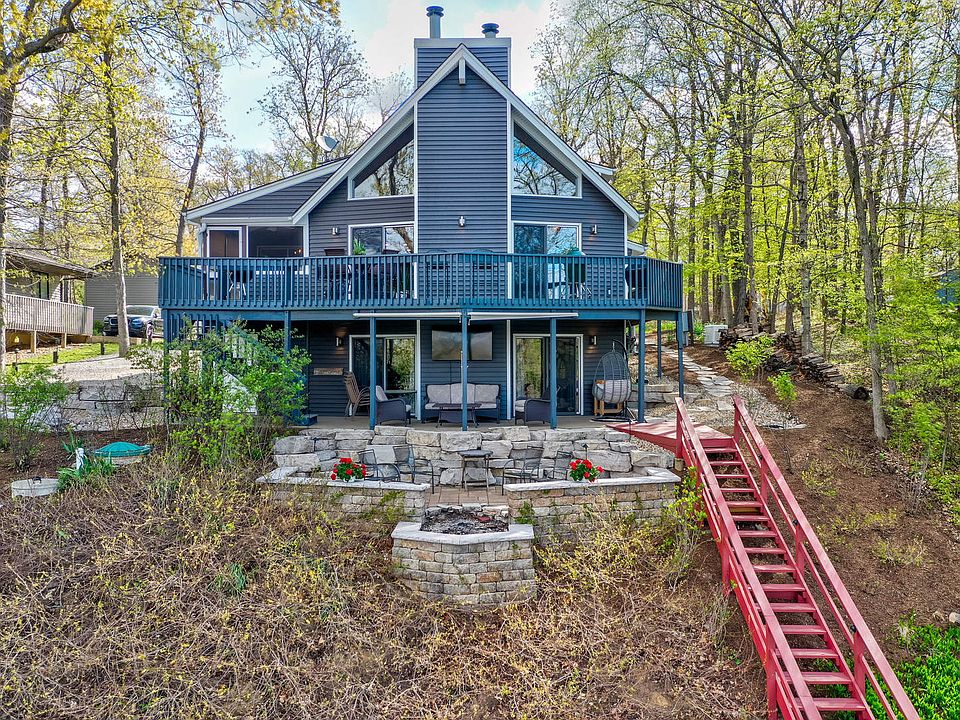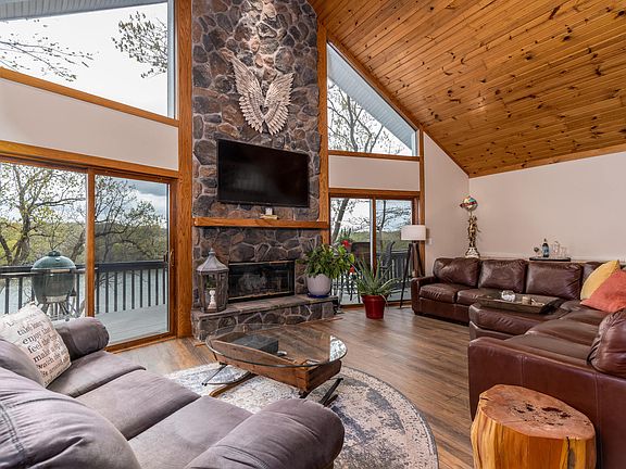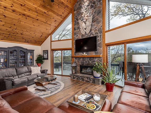 This beautiful 4 bedroom, 3 bath lakefront home in gated Lake Wildwood has everything you dreamed of for your next lake house! The home has an open floor plan from kitchen into the great room which features amazing water views as well as a gorgeous stone fireplace and vaulted pine ceilings. This house is in a great location for both water frontage and to the pool! Water Frontage features a boat dock with lift, swim deck, lake shed, and steel seawall. Enjoy the sunset as you roast your marshmallows by the stone fire pit outside the walkout basement. Home also has newer flooring (4 years), new siding in 2022, and a whole house generator. Don't miss out on what Lake Wildwood has to offer as well 2 lakes great for fishing and boating, 2 beaches, pool, marina, club house, multiple parks and pavilions and so much more. All offers subject to Lake Wildwood rules, covenants, and rights of first refusal.