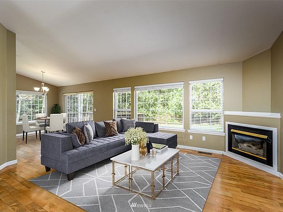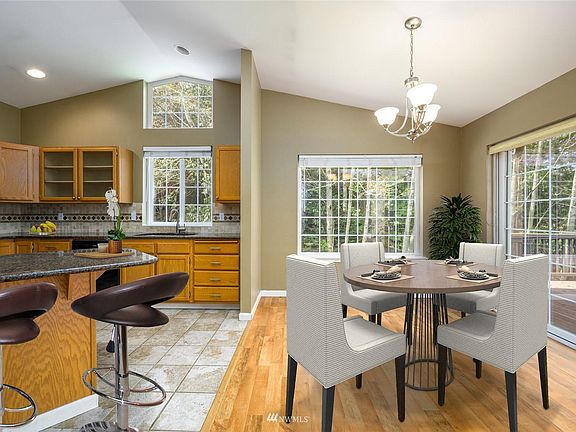 Fabulous single-story home on a cul-de-sac at the edge of the Little Cranberry Lake Trailhead! Lots of natural light in this move in ready home! Beautiful laminate hardwood flooring throughout main living areas & bedrooms. Ceramic tile in kitchen and baths. You will love the vaulted ceilings in the great room, kitchen and dining room! Cozy corner gas fireplace adorns the great room. Spacious kitchen boasts tons of cabinet and counter space, tile backsplash, island with seating and open concept. Amazing mostly private backyard bordering green space and perfect for entertaining has a two-tiered deck with hot tub, paver patio ideal firepit area, plenty of open green space and side yard dog run! Quick access to both Anacortes & NAS Whidbey!