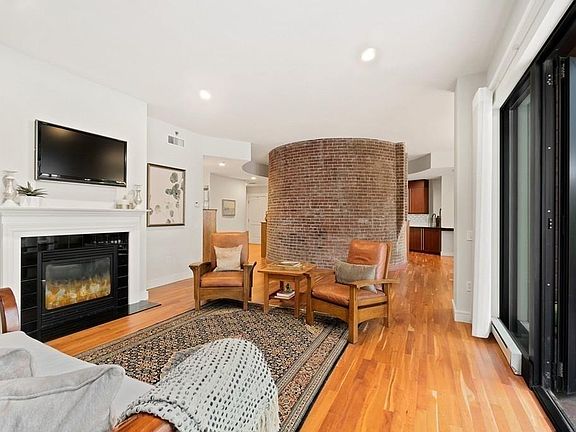 A suburban oasis awaits in a landscaped courtyard all to yourself with 200+SF patio to use year round as you gaze into the fireplace living room or bask in the sun 3 seasons! Situated with no views of the train, a desirable, private location. Enveloped by a landscaped courtyard and historic scenic appointments, a sun-filled private patio adds an abundance of space and light to the perfect 2 bed home! This historic home offers soaring ceiling heights in all living and bedrooms, exquisite walls of architectural windows w/ light flowing in every room! Cozy up to a gas fireplace in main living area where exposed brick feature is the alluring backdrop. A modern circular kitchen that conceals the busy work for today's preferable design! Large bed's, huge deeded storage room for furniture, 1 deeded ovegarage & 1 exterior parking, this one of a kind property is offers value! Prof. managed site, smoke-free property, fitness ctr, concierge & 7 picturesque acres. Near T, Rt. 9 shop,CH Reservoir