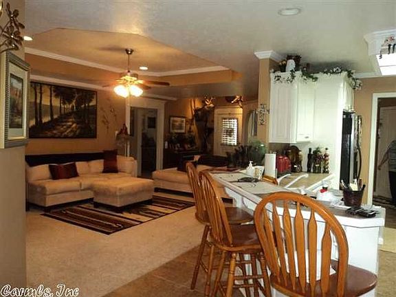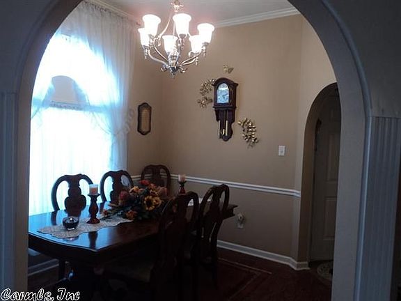 Immaculate home with detailed trimwork has open floor plan featuring large living area with contrasting fireplace and french doors that open to super nice sunroom. You'll love the kitchen...TWO pantries with roll out drawers, a breakfast bar, & plenty of counterspace & cabinets. Arched entryways, hardwood floors & 10' ceilings give the formal dining an elegant touch. Other features include a covered porch on one side & a nice patio on the other, beautiful landscaping, 2" custom blinds, SS dishwasher, More