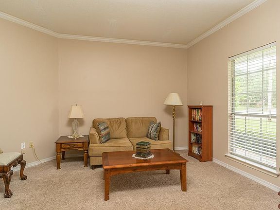 This home is move-in ready! Enter through the front door into an open foyer with the formal dining room and formal living room on either side. Continue through to the den with tile floors, fireplace with gas logs and built-ins. The open and airy kitchen with white cabinets and breakfast bar, as well as a breakfast room also has tile floors. All the spacious bedrooms have carpet and nice sized closets. The master bedroom has recessed lighting and a great sized master bath with a large walk-in shower, garden tub and double sinks. The den opens to a large sunroom that would be great for entertaining. The sunroom opens to a patio surrounded by an iron fence overlooking a large fenced yard. There is also a two car attached garage. Call your favorite REALTOR today to schedule your personal showing. All information to be verified by buyer and buyer's agent.