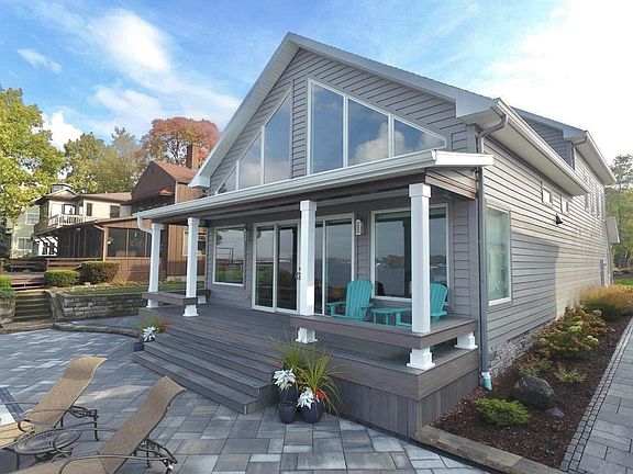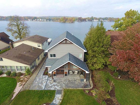 STUNNING lakefront home located on premiere, deep water Lake Manitou property with golf course across the street. Completed in 2019, this luxurious 4BR/2.5BA home is the perfect blend of understated craftsman architecture outside, and clean, contemporary lines (with a touch of glam!) inside. A wood beamed ceiling soars over an open, light-filled living and dining space with linear, gas fireplace and Luxury Vinyl Plank flooring. Gourmet chef's kitchen is an epicurean dream and entertainer's delight- with custom cabinetry, expansive island with Cambria quartz countertops, stainless steel farmhouse sink, Thermador 48" double oven/gas range and dishwasher, French door refrigerator, and huge walk-in butler's pantry with microwave and additional sink. The spectacular main level master suite has large walk-in closet with laundry room and luxurious spa-like marble master bathroom including double vanity sinks and walk-in shower. Separately zoned upstairs features comfortable family room, three additional bedrooms and full bath. Oversized sliders open onto covered lakeside porch with terraced paver patios and Shorestation pier for waterfront lounging sun up to sun down! Golfers will enjoy the rear-yard covered outdoor kitchen area with gas grill, refrigerator and cooktop (the perfect 19th hole). Extensive hardscaping/irrigated landscaping and outdoor Sonos sound system. Price includes 40'x60' vacant lot on Waterview Dr. Be prepared to be impressed and ready to stay a lifetime!