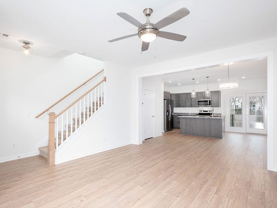 Discover this stunning new townhome, perfect for modern living and entertaining! The open floorplan and 9-foot ceilings create a spacious and inviting atmosphere. The kitchen is a highlight with its large island and elegant granite countertops, which are also featured in the bathrooms. All bedrooms are conveniently located on the second floor, including a master bedroom with a walk-in closet and a bathroom that includes double vanities. Enjoy the convenience of designated parking, and be just 5 minutes from the interstate, Publix, shopping, and dining. This home offers comfort and accessibility in a fantastic location!