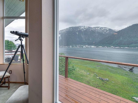 Imagine the sights and sounds from this stunning waterfront home! With easy access from either the main entry or the 529 square foot 2-car garage, you are welcomed to this 1,764 square foot 3 bedroom 3 bathroom attached home by an extraordinary wall of windows capturing both sunlight and the view, vaulted ceiling, gas fireplace, open concept kitchen with stainless steel appliances. The Platinum Curve stair lift effectively makes this two-story home into a one-story oasis. Enjoy spectacular dramatic views of Gastineau Channel, downtown Juneau, and Mt. Roberts and Mt. Juneau with the floor to ceiling windows in the living room, from your own private deck, AND from the expansive windows in the master bedroom! The master bedroom also features a "California walk-in closet" as well as an exquisite en-suite bathroom featuring a marble and granite step-in shower. Properties with panoramic views of downtown Juneau, mountains, and saltwater do not become available very often. If you are interested in living in a gorgeous setting with unobstructed views, you must see this one!