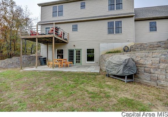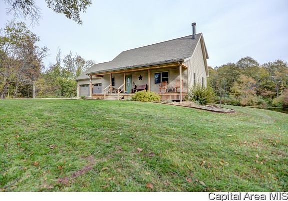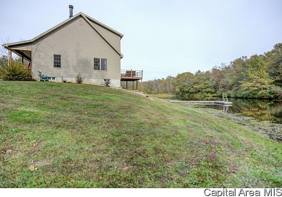 Outdoorsman's Paradise! Wooded 7.8 acres w/ abundant wildlife and a stocked pond featuring bluegill, catfish and bass. Built in 2007, the story and a half home has a full basement finished in living area. Main lower level room 36' X 15'6 has dura ceramic tile and custom hardwood bar w/bar stools that will stay. Geo thermal heating system with radiant heat in basement floor. Ameren Electric and propane for shed only. 12' X 10' 2nd story deck on rear. Patio 20' X 13'. Professional built retaining walls and landscaping. Consolidated Comm Internet service. Rural water available @ road.