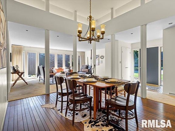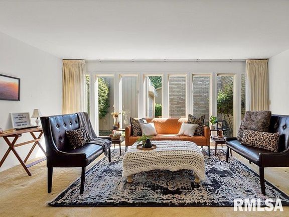 This highly UNIQUE home was designed, built, & lovingly owned by a local architect that also designed several QC landmarks such as JD headquarters, Eisenhower & Buchanan schools, & the interior of the Black Hawk Hotel. This ONE-OF-A-KIND home features contemporary mid-century modern elements that was influenced by the clean lines of Frank Lloyd Wright & design that the architectural lover will appreciate! Upon entry you are greeted with an open Dining Rm w/CHARMING lighted raised ceiling & walnut stained hardwd flrs. SPACIOUS Family Rm w/abundance of NATURAL LIGHT through flr to ceiling windows that have a view to the outdoor private courtyard. Hearth Rm w/wood burning fireplace & sliders to patio. The Kitchen boasts NEWER dark wood cabinets, quartz counters, & SS appls. PRIVATE backyard w/ mature trees, flowers, & gazebo swing! 3 LARGE BRs& 2 Baths are located on the main level. Primary Suite includes a full Bath. Bsmt features storage, ½ Bath & Craft Rm w/daylight windows. 2 car gar!
