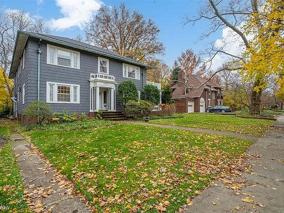Welcome to this elegant 1916-built center hall colonial in historic Cleveland Heights, just up the hill from Cleveland's cultural, academic, and medical hub known as University Circle. Walk to Little Italy, Lakeview, and the shoppes of Cedar Fairmount or Coventry. A classic center hall layout, the graceful entryway opens up to living room, dining room, and kitchen area. Spacious living room with hardwood floors, fireplace, and bank of updated windows in front and back. Step into the heated and cheerful sunroom with wall of windows--a perfect spot to play or read. The formal dining room with chandelier, picture-frame wainscoting is as elegant as it comes. The spacious eat-in kitchen is larger than most Heights kitchens: white cabinets, stainless appliances, center island, stone counters, barstool area, + eat-in area and added space for potential sofas and sitting area. Everyone will be hanging out in the kitchen, AND you wont be bumping into each other! Rear deck off kitchen door for al fresco dining overlooking the 1/3 acre fenced yard and attached garage. Ascending the graceful stairway to second floor, with private owner's suite tucked in back with fireplace and en suite. Four additional bedrooms and two full bathrooms complete the 2nd floor. Full unfinished basement is clean and bright, with updated mechanicals, storage and laundry area. This is a special home and property, spacious, and ready for next owner to love it as much as current owners have--come have a look! Updates include Roof (2022), Boiler (2019), Refinished Floors (2022), Electrical updates (2022), and long term good maintenance.