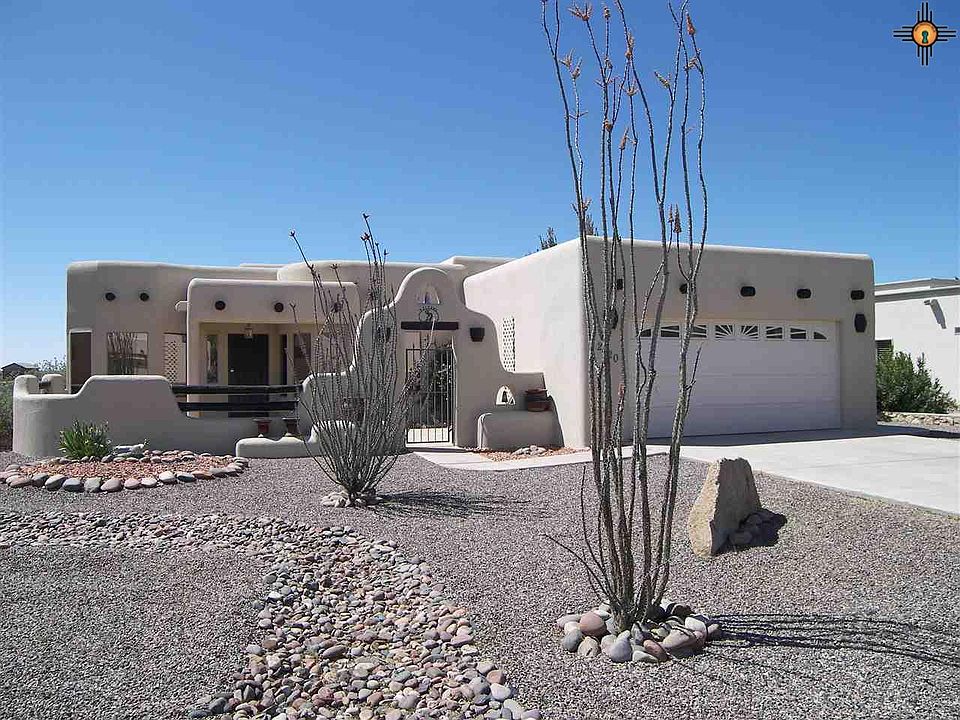 Beautiful SW style home, in Country Club Estates, a 55+ community. HOA, with $150 annual fee. Beautifully landscaped. Tankless water heater, central vacuum, built in hutch, AC, lighted niches, plant ledges, Kiva fireplace. Computer room, separate laundry room with tub. Garage has work area or storage area.
